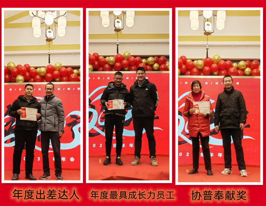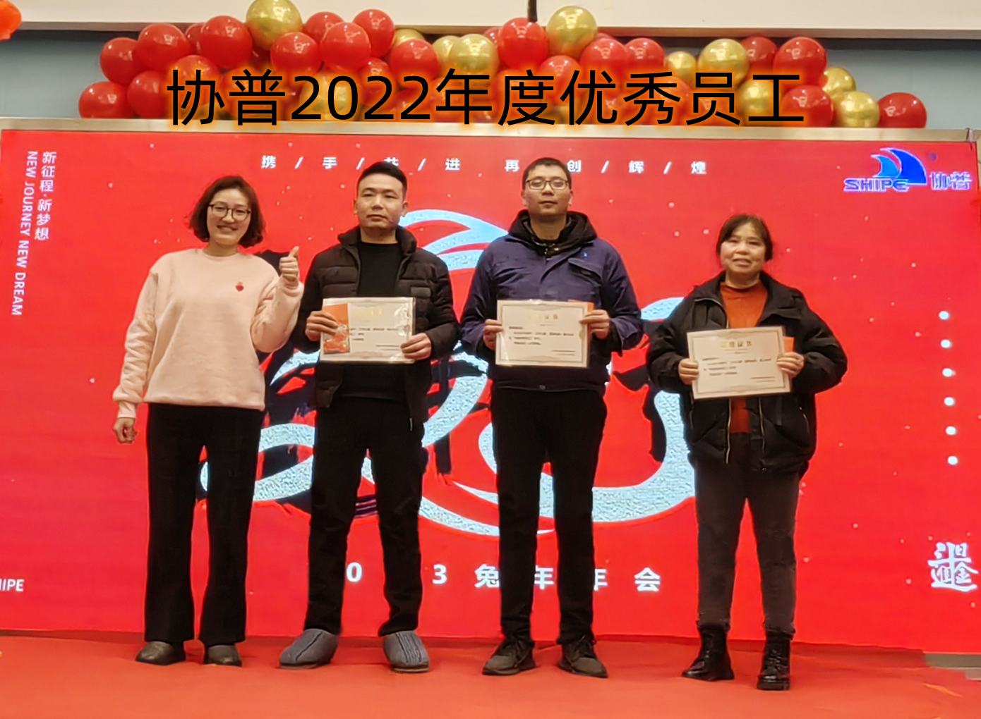 趙總致辭后,公司為2022年度表現(xiàn)優(yōu)異的團隊和個人進行了表彰。人才是公司生存和發(fā)展之本。公司發(fā)展的每一步都離不開每個協(xié)普人的努力和付出。本年度公司共評選出三名優(yōu)秀員工——陶?;顒?、徐金鳳,“2022年度突出貢獻獎”——張傳東、桂佳俊,“2022年度敬業(yè)獎”——陳阿龍,“年度宣傳小能手”——宋玉秋;“協(xié)普年度出差達人”——胡金龍,“年度最具成長力員工”——王傳銀,“5S進步團體”——技術(shù)部、車間鉚焊班,“質(zhì)量進步團體”——質(zhì)量部,“協(xié)普奉獻獎”——劉庭玉。