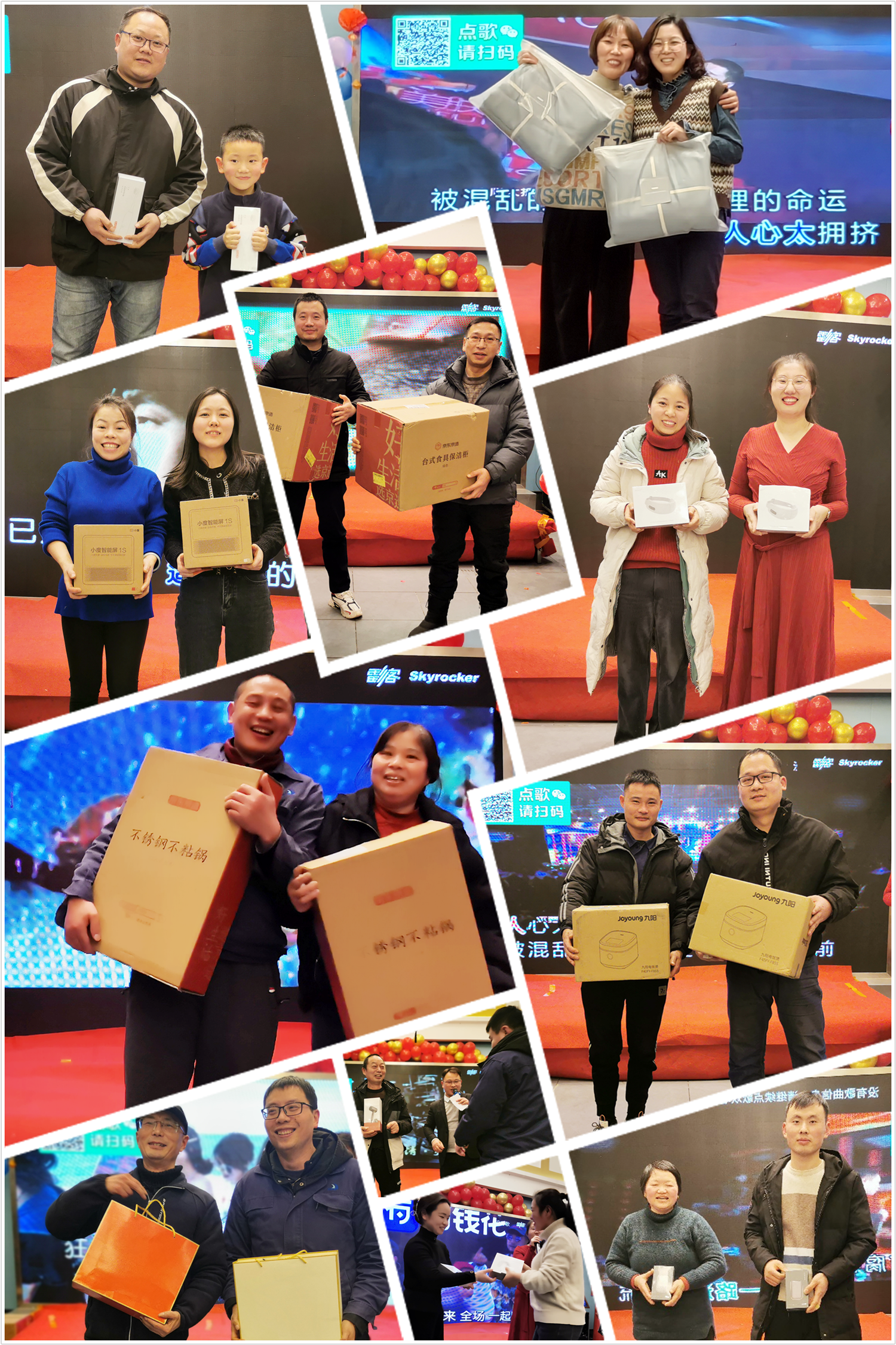 年會最激動人心的莫過于幸運大抽獎, 本次年會抽獎公司準備了一批精美的生活電器禮品禮盒,還有暖心的生活家居用品、可愛的布偶娃娃,伴隨著抽獎和各項小游戲,開始了年會的晚宴環(huán)節(jié),以此來答謝各位協(xié)普家人一年來的辛勤工作與默默付出。大家聚在一起,舉杯歡飲,共襄盛舉。更有協(xié)普小朋友們的熱情暖場,現(xiàn)場氣氛熱烈,歌唱聲、嬉戲聲、祝福聲、碰杯聲此起彼伏......