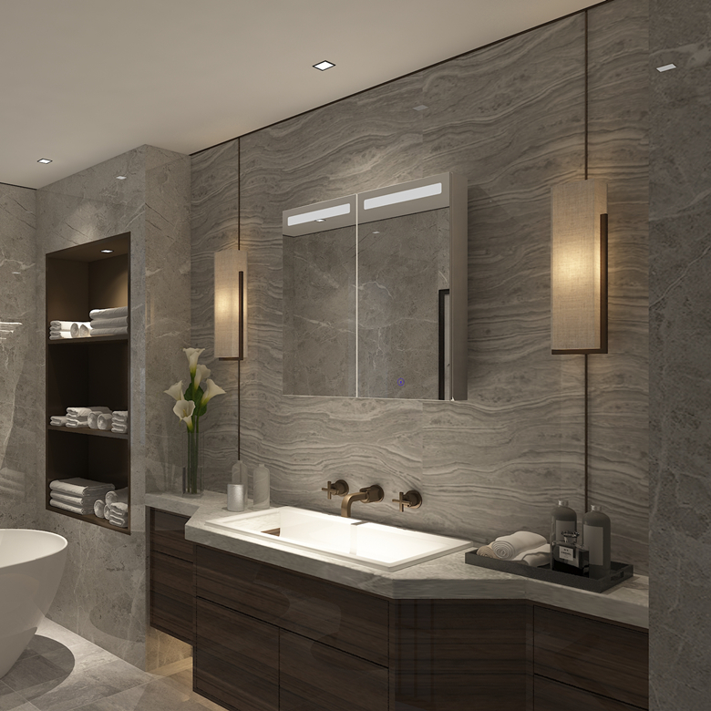 可選配功能:LED鏡前燈;防指紋不銹鋼;防霧;插座。